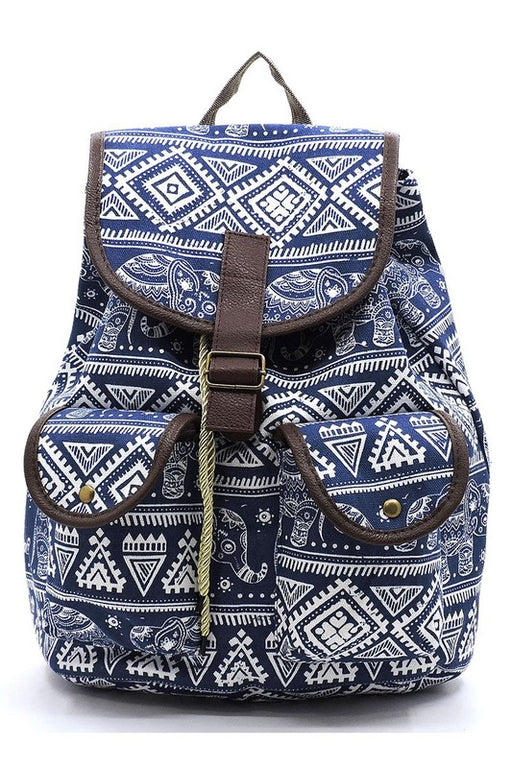 Tribal Printed Canvas Backpack Canvas Faux leather trim Magnetic snap & Drawstring closure Gold-tone hardware L 12 * H 15 * ...