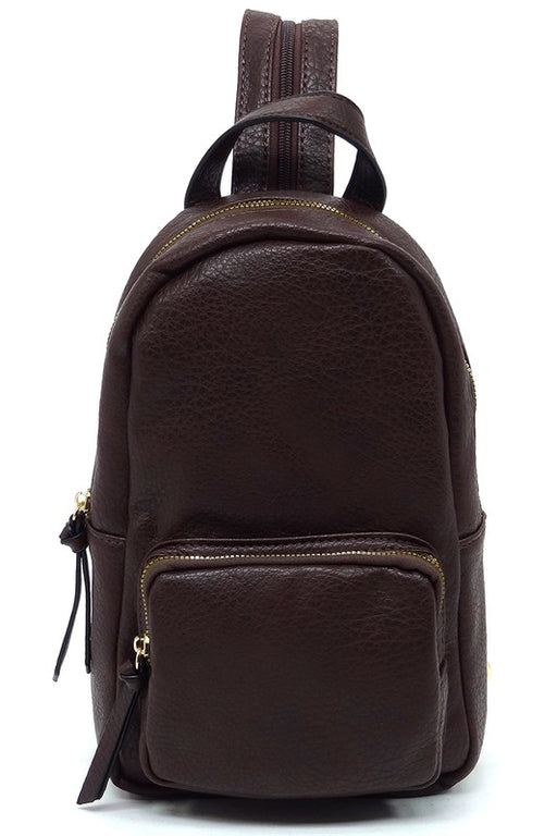 Calin Sling Backpack Faux vegan leather Zip top closure Gold-tone hardware Adjustable shoulder strap L 7 * H 11.5 * W 4 (2.5 D)