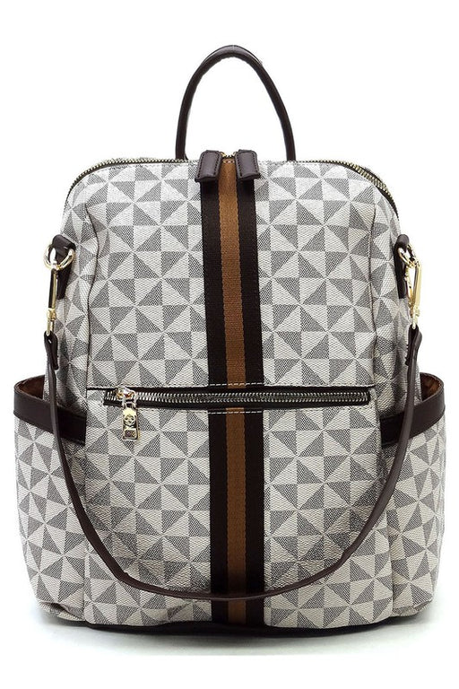 PM Monogram Striped Convertible Backpack Faux vegan leather Zip top closure Gold-tone hardware Detachable shoulder strap L 11 * ...