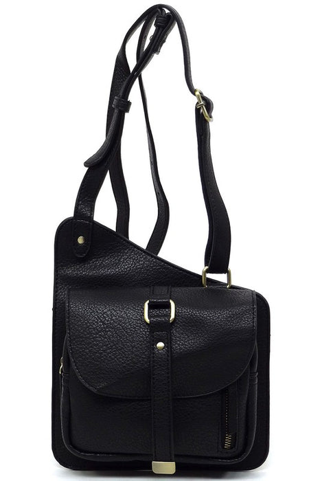 Fashion Flat Crossbody Bag Faux vegan leather Zip top closure Antique Gold-tone hardware Adjustable shoulder strap Convertible bag (Crossbody & Fanny pack) L 5.5 * H 8.5 * W 1