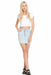 Truly timeless, this wear-with-everything skirt is featured in a slim straight silhouette with a soft, stretchy denim front distressed and raw-edge hem.