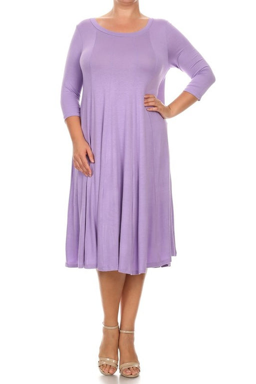 Moa CollectionSolid jersey knit a-line dress with paneled detail, round neckline, and 3/4 sleevesFull length:Approx 43 inBust:Approx 31 inShoulder:Approx 16 inSl...