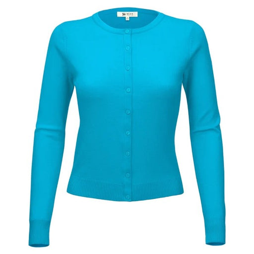 Mak- 24.5"-25.5" Length, 3/4 Sleeves, Button Down, Basic, Daily, Casual, Crewneck Knit Cardigan Sweater- Various Vivid Color Choices with Sizes: Small...