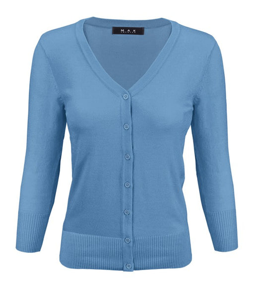 Mak- 22"-23" Length, 3/4 Sleeves, Button Down, Basic, Casual, Daily, V-Neck Knit Cardigan Sweater.- Various Vivid Color Choices with Sizes: Small, Med...
