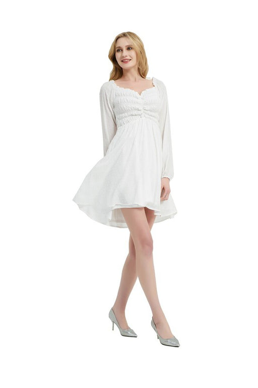 Annva USASweetheart long sleeve dress with a smocked bodice 100%Cotton Lining 100%Polyester Style: casual Print / Pattern: solid Silhouette: waist elastic F...