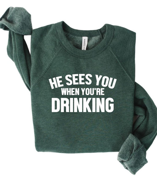 Ocean and 7thPremium Bella Canvas Crew Neck Sweatshirt -He Sees You When You're Drinking7 oz, 52/48 airlume combed and ringspun cotton/polyester fleece, Fabric ...