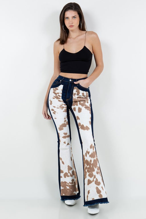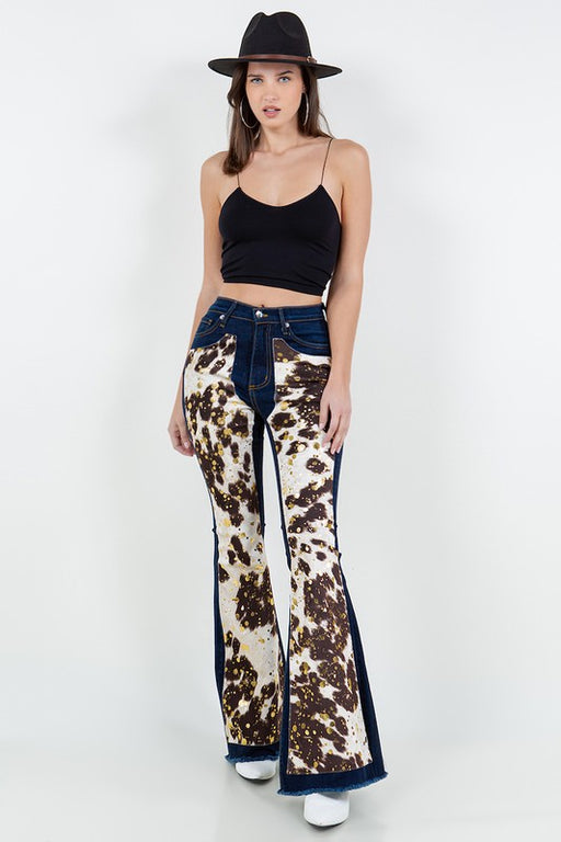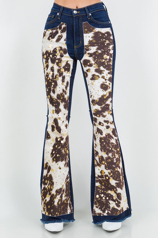 GJG DenimRide into style with our Rodeo Bell Bottom Jean! These Western-inspired jeans elevate any outfit with front faux cow hide inserts and a flattering ...
