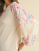 62%Polyester+32%Cotton+6%Elastane The patchwork design adds a unique touch to the floral print, creating a standout piece that effortlessly combines sophistication with a bohemian flair.