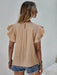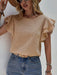 This chic top is a stunning addition to any outfit, blending a classic colors with playful details. The charming ruffle sleeves, adorned with delicate lace edging, add a feminine touch to the structured shape of the top. Its crew neckline offers a versatile and comfortable fit, making it suitable for both casual and dressier occasions. Pair it with denim for an elevated casual look, or tuck it into a skirt for a more polished ensemble. The simplicity of the design is offset by the intricate sleeve detailing, ensuring this top will become a cherished piece in your wardrobe.