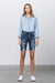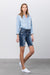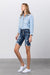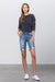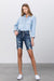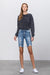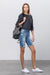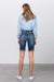 Frayed Raw Hem Ripped Bermuda Shorts - 98% Cotton, 2% Spandex - Stretch Denim - Frayed Raw Hem - Distressed - Button Down Closure - Pockets - Imported, Designed In USA