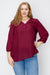 * Featuring Solid, 3/4 Sleeve, V Neck with Button, Wast Length, Loose Fit, Solid Colors and Casual Style * Soft and Silky Fabric * 100% Polyester * Imported. Designed by USA. * Hand wash cold. Do not Bleach. * Model is 5' 9" tall, 40C Chest, 34.5" Waist and 45" Hips.