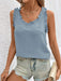 This ruffle trim tank top blouse is a must-have for warm-weather layering. Featuring delicate ruffle detailing along the neckline and shoulders, this sleeveless top is both feminine and versatile. Made from a soft, lightweight fabric with a slight stretch for comfort, it's perfect for pairing with jeans, shorts, or skirts.