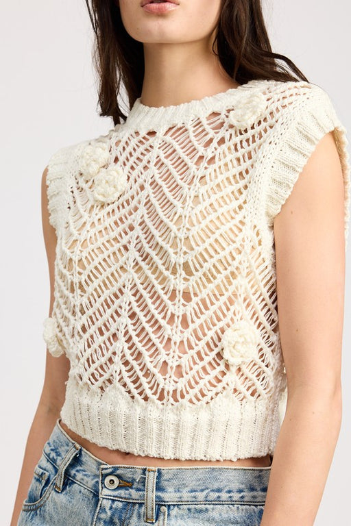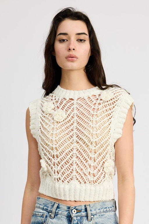 FLOWER DETAIL SLEEVELESS CROCHET TOP
