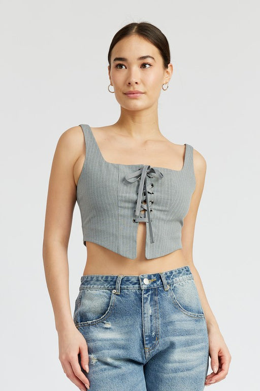 View full detailsSQUARE NECK TOP WITH LACE UP FRONT