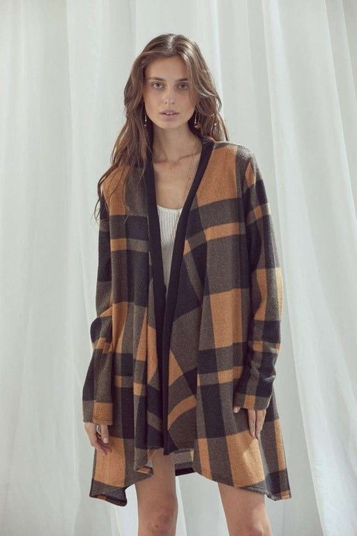 Jade By JaneCHECKER PRINT/PLAID LONG SLEEVE OPEN CARDIGANMade In: MADE IN CHINA