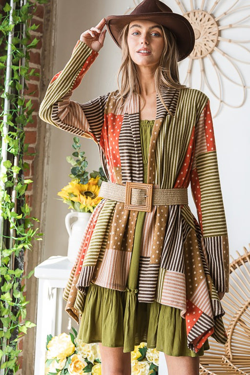 Jade By JanePOLKADOT AND STRIPED MIX PRINT OPEN FRONT CARDIGANMade In: MADE IN USA
