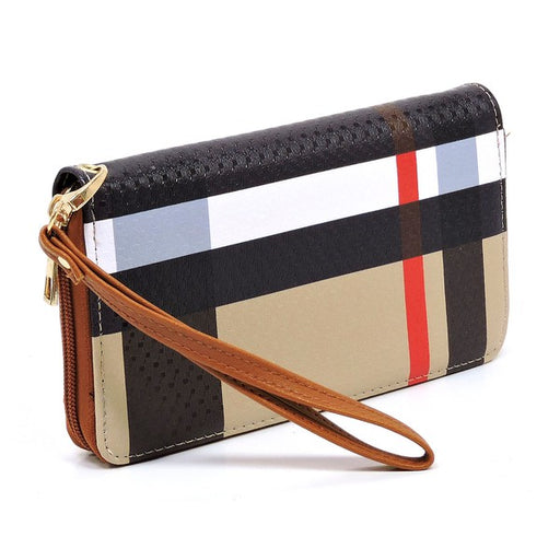 Fashion WorldPlaid Check Printed Zip Around Wallet WristletFaux vegan leatherZip around closureGold-tone hardwareDetachable wrist bandL 7.75 * H 4.25 * W 1
