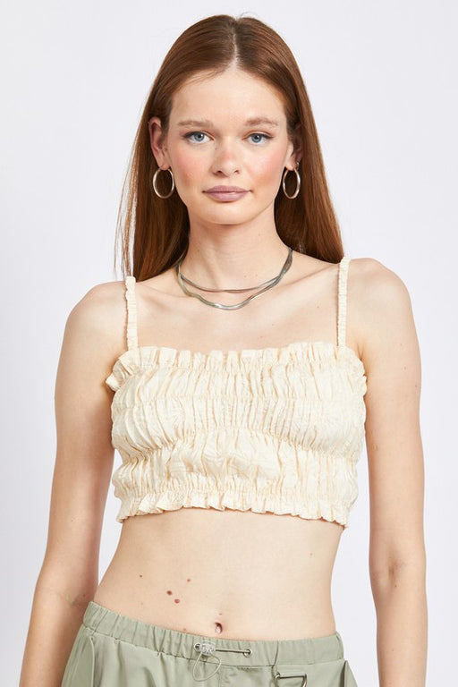 SPAGHETTI STRAP RUCHED CROP TOP