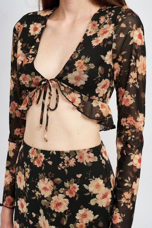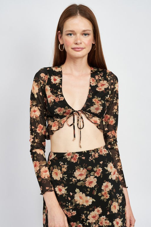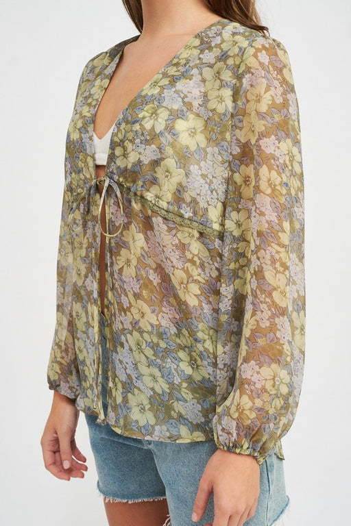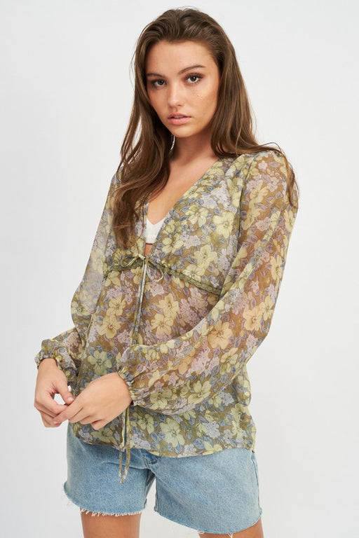 FLORAL LONG SLEEVE SHEER BLOUSE