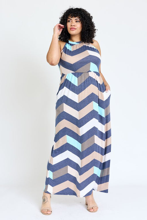 EG fashionPlus Halter Neck Chevron Maxi DressMade In: United StatesFabric Contents: 78% Polyester 18% Rayon 4% Spandex