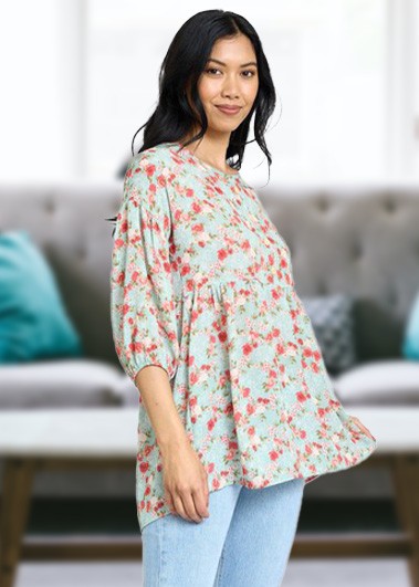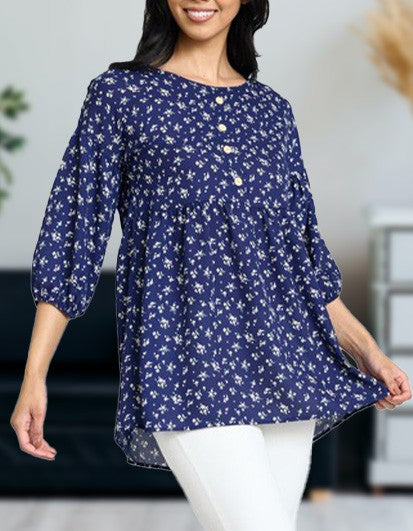 EG fashionButton Accent Ditsy Floral TunicMade In: United StatesFabric Contents: 100% Polyester