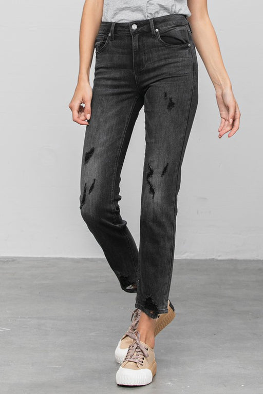 Denim Lab USAMid Rise Distressed Straight Jeans- 49% Cotton, 29% Polyester, 21% Rayon, 1% Spandex- Stretch Super Soft Denim- Distressed, Ripped- Pockets- Import...