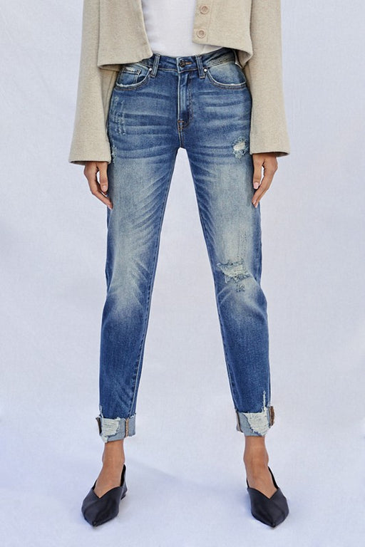 View full detailsHigh Waist Destroyed Hem Boyfriend Jeans