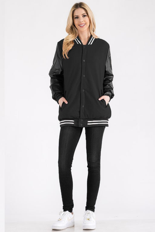 WEIVWomens Boyfriend Oversize Letterman JacketVarsity Jacket StyleSnap Button ClosurePU SleevePadded and Quilted InsideInside Left Chest Pocket100% Pol...