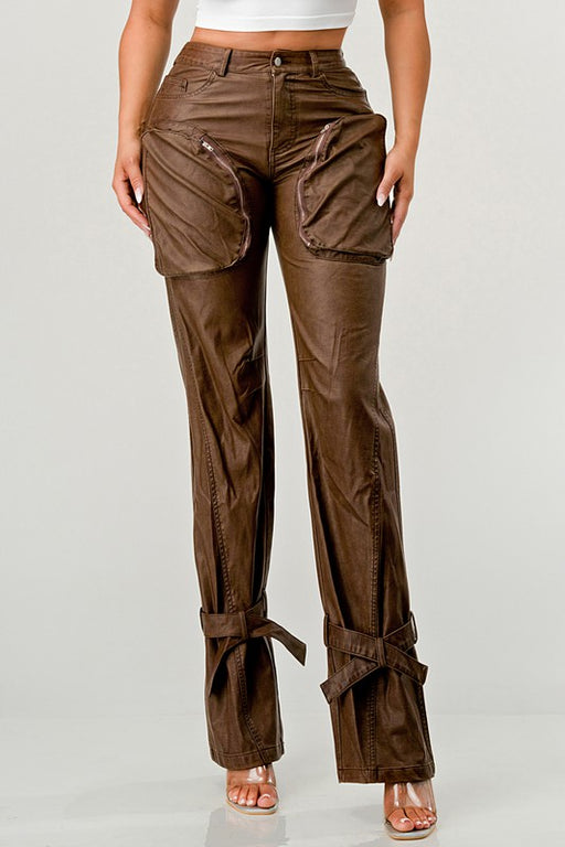 View full detailsAthina PU Brown Cargo Pants