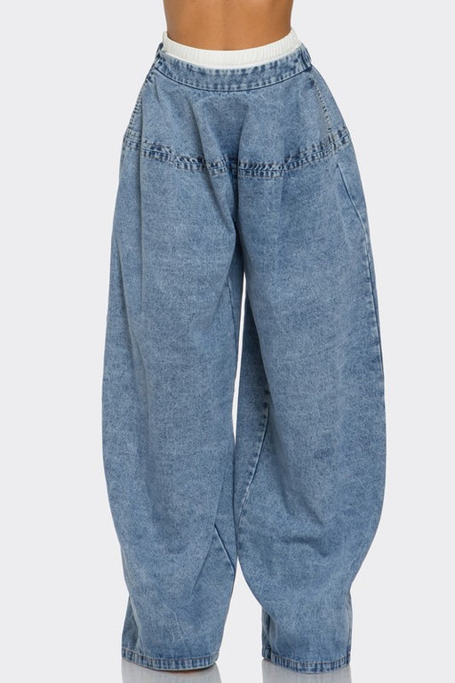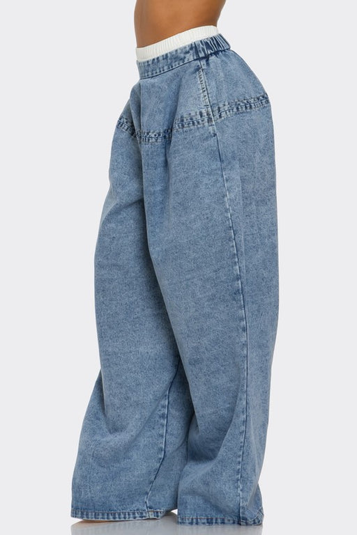 AthinaIndigo Trailblazer Denim PantsThe design features a high-waisted, wide-leg silhouette that offers a bold statement with its unique buttoned side sp...