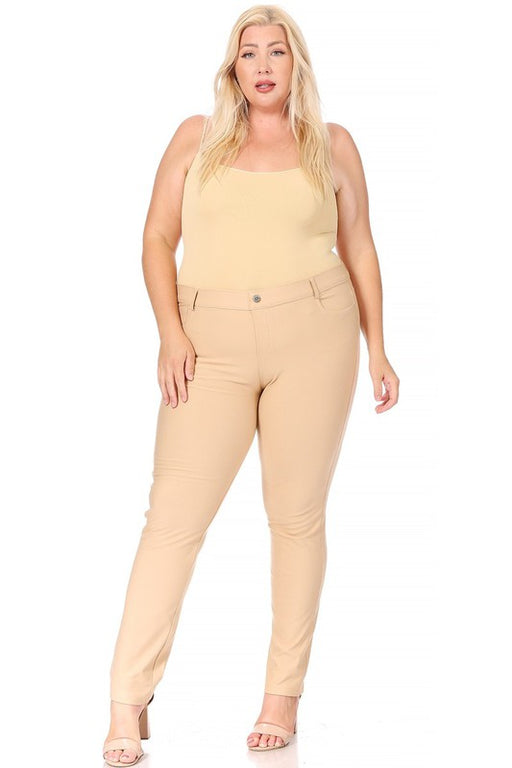 Plus size, stretchy, pull up, full length jeggings with belt loops, pockets, and button accentApprox Length: 42 in from waist to hem, Waist: 38 inM...