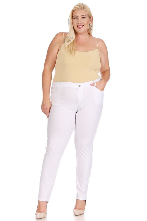 Moa CollectionPlus size, stretchy, pull up, full length jeggings with belt loops, pockets, and button accentApprox Length: 42 in from waist to hem, Waist: 38 inM...
