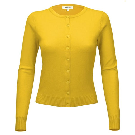 Mak- 18"-19" Length, Crewneck, Long Sleeves, Rounded Jewel Buttons, Button Down, Basic and Classic Viscose Crop Cardigan Sweater for Women.- Lightweig...
