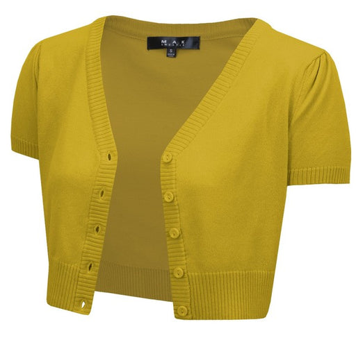 Mak- 15"-16" Crop Length, Puffed Short Sleeve, V Neck, Bolero Knit Cardigan Sweater that Hits Upper Waist Point- Various Vivid Color Choices- Fits Wel...