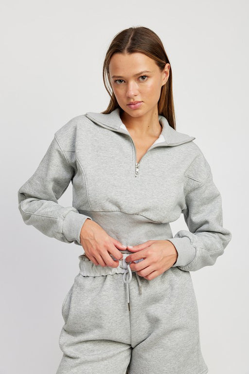MOCK NECK CROPPED SWEATER WITH ZIPPER