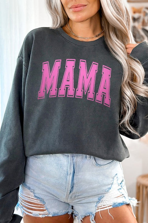 Cali BoutiquePink Puff Mama printed on Comfort Colors Sweatshirt. Garment dyed for that lived in feel and almost no shrinkage at home. 3-end cotton face fleece ...