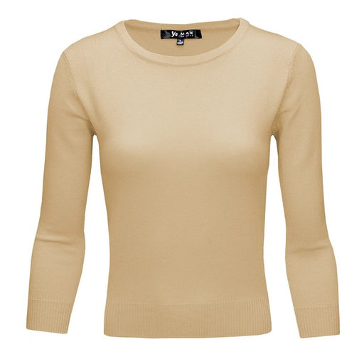 Crewneck 3/4 Sleeve Spandex Pullover Sweater