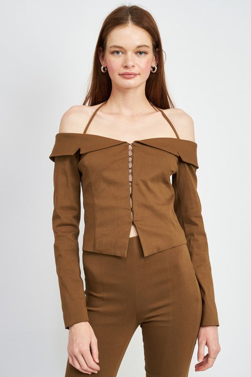OFF SHOULDER LONG SLEEVE KNIT TOP
