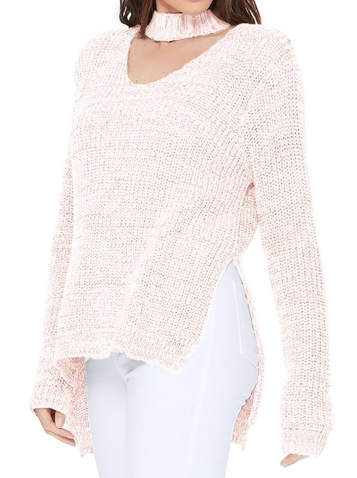 View full detailsChoker Neck Side Split High Low Knit Top