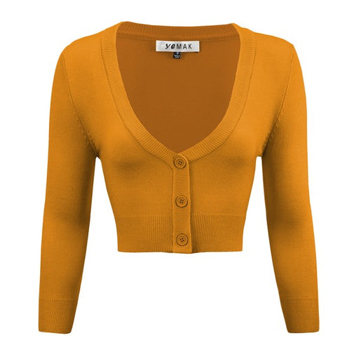 Mak- 14"-16" Crop Length, 3/4 Sleeves, Button Down, V-Neck Bolero Shrug Knit Cardigan Sweater for Woman that Hits Upper Waist Point.- Various Vivid Co...