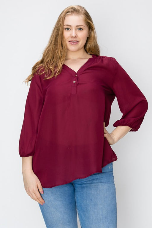 Bagel* Featuring Waist Length, 3/4 Sleeves, V-Neck, Hi-Low Hem, Relaxed Fit, Solid Color, and Casual Style.* Polyester Spandex Fabric* 92% Polyester 8% ...