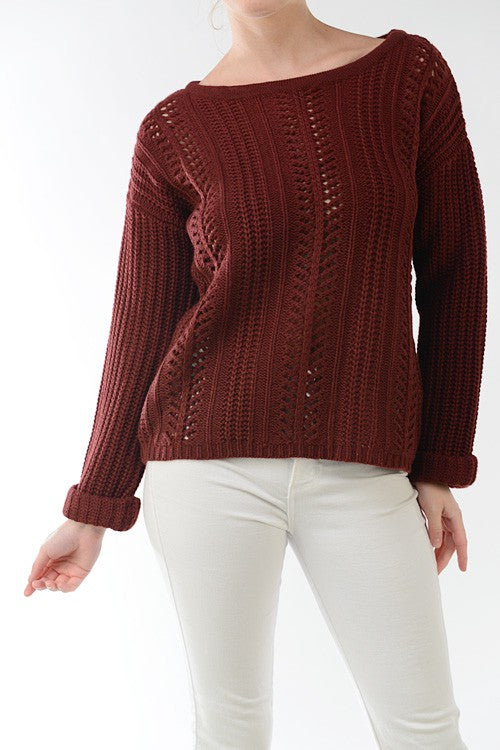 Mak- Long-sleeved Breathable Sweater with Folded Cuffs and Ribbed Hem- Cute and Cozy Waffle Pointelle Body Stitch. - !00% Soft Acrylic Gives Warm, Co...