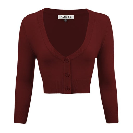 Mak- 18.5-19.5" Crop Length, 3/4 Sleeves, Button Down, V-Neck Bolero Shrug Knit Cardigan Sweater for Woman that Hits Upper Waist Point.- Various Vivid...