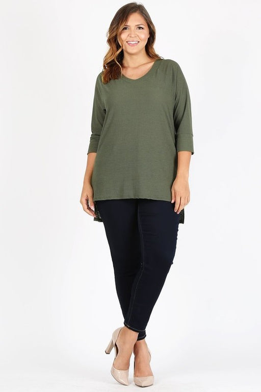 View full detailsPlus Size Knit V-Neck Hi-Low Top