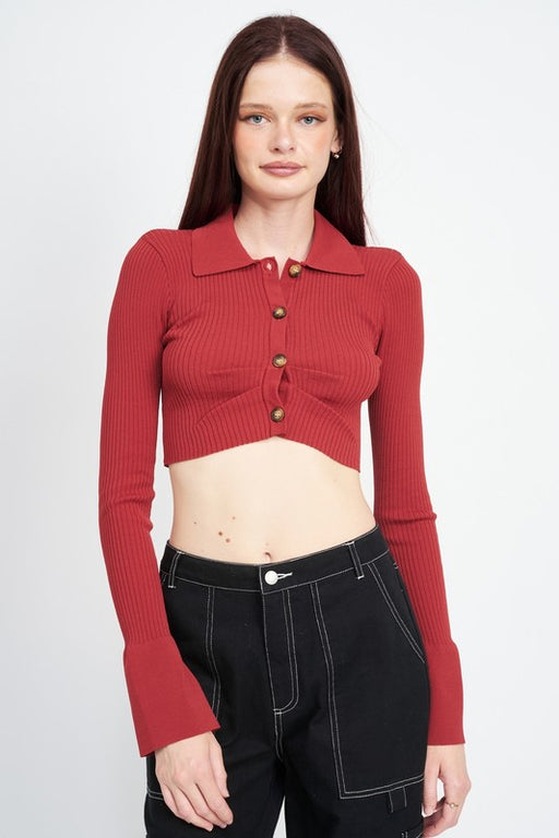 View full detailsCOLLARED LONG SLEEVE CROP TOP