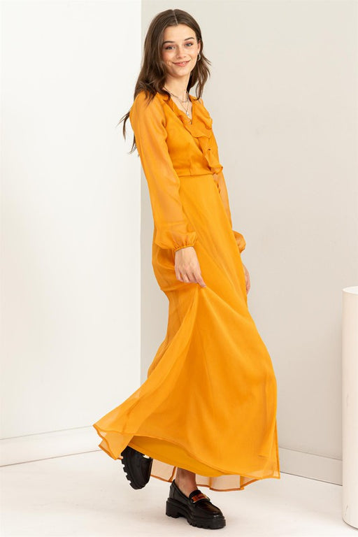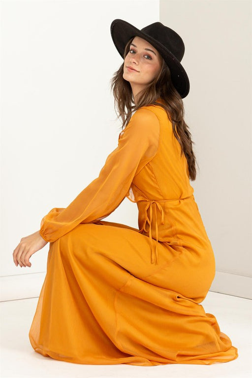 TrendsiEvoke the spirit of tribal elegance in this striking V-neck dress adorned with vibrant mustard and blue hues, reminiscent of desert sands and clear...