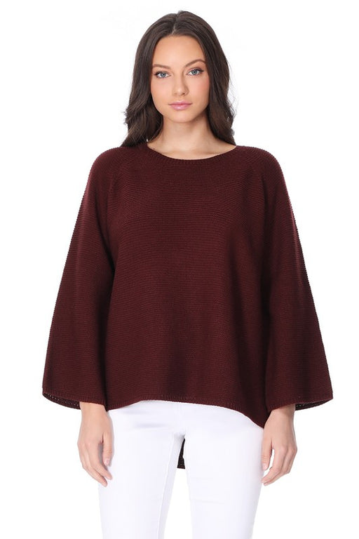 Mak- 22-23" Length.- Wide Bell Sleeve, Chunky Body, High - Low Length.- Beautiful Waffle Textured Pattern with Ribbed Detail at the Neck, Cuffs and He...