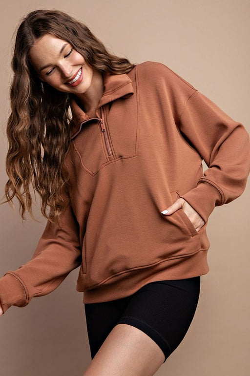 Modal Poly Span Quarter Zip Funnel Neck Pullover