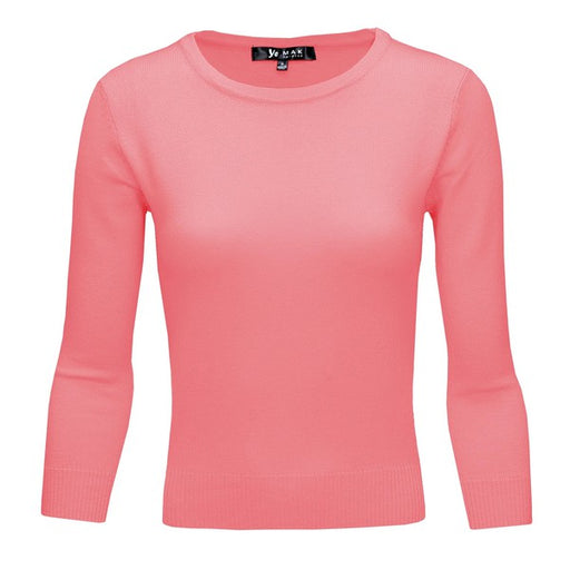 Crewneck 3/4 Sleeve Spandex Pullover Sweater