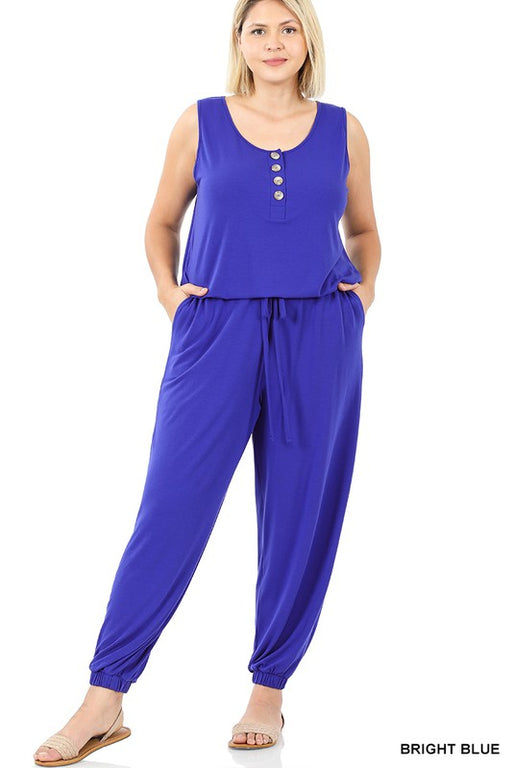 ZENANAPLUS SLEEVELESS JOGGER JUMPSUIT WITH POCKETS- BUTTONS ARE FUNCTIONAL** MORE COLORS ETA 02/04/22TOTAL BODY LENGTH: 22.5" (TOP), CHEST: 44", INSEAM: ...